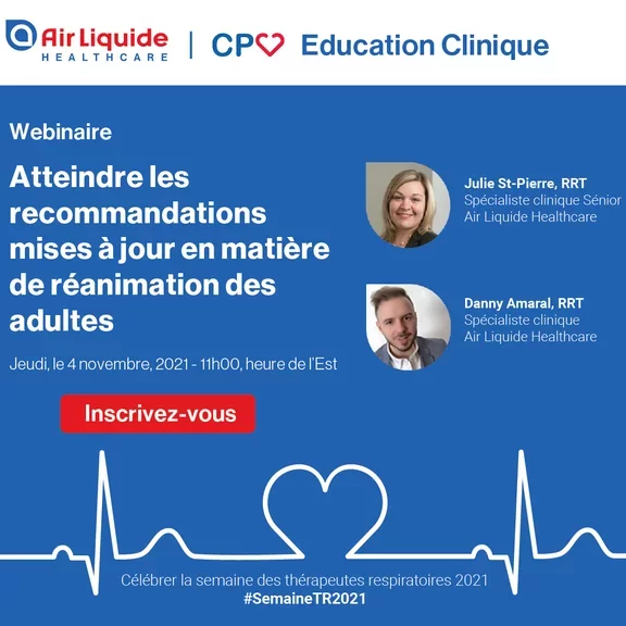 Cette présentation est la première de quatre séries de webinaires gratuits consacrés à la formation par des inhalothérapeutes sur l'importance d'utiliser les bons outils pour mettre en œuvre les meilleures pratiques afin d'optimiser le succès de la réanimation.