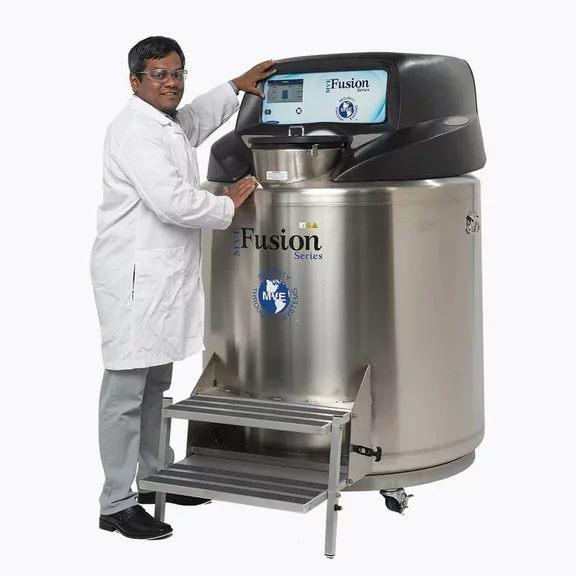 Le premier congélateur cryogénique autonome au monde. Le MVE Fusion est un congélateur de stockage biologique à base de liquide réfrigéré. Sa conception unique offre des capacités de stockage du froid, sans qu'il soit nécessaire de disposer d'un approvisionnement constant en LN2 pendant le fonctionnement normal. Il peut être utilisé dans des endroits éloignés, des pièces isolées, des installations en haute altitude et des installations avec peu ou pas de tuyaux à enveloppe sous vide.